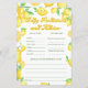 Adicione um toque divertido ao tema do chá de fraldas de limão com este jogo personalizado de predições para bebês e conselhos! Perfeito para um chá de fraldas com tema de limão, este jogo permite que os hóspedes compartilhem seus palpites e sabedoria para os futuros pais. Um excelente adicional aos temas do chá de fraldas de verão, complementa seu brilhante e alegre decorador de chá de fraldas de limão. Desfrute de uma celebração memorável com esta doce lembrança do seu chá de fraldas de verão!