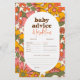 Um cartão retrô de conselhos e previsões de bebês que corresponde ao nosso "Olá, Querida | Groovy Retro Flowers Boho Chá de fraldas". Exibir a coleção vinculada nesta página para itens correspondentes. Este design apresenta um plano de fundo floral de ranhura com uma cobertura oval branca no centro. A paleta colorida de vinheta quente de matizes castanhos, amarelos, laranja, creme e verdes dá um toque real de 70 anos. O padrão de margarida florida é um padrão de potência em forma de desenho animado, feito à mão, com cores ousadas e contornos fortes para corresponder ao estilo hippie dos anos setenta. Dentro no quadro oval, há espaço para os convidados escreverem suas previsões de natalidade, previsões de semelhança, e conselhos para os novos pais.