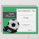 Um prêmio moderno de certificado de prêmio desportivo na moda com bola de futebol e botas de futebol é uma imagem perfeita para encorajar um jovem jogador de futebol ou um estudante de futebol. Você pode escrever em seus próprios detalhes. Um recurso de excelente para qualquer tipo de professor de esporte.
