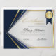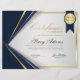 Certificado profissional de design de prêmio de de de de conquista apresenta cores azuis, douradas e cinzas com linhas detalhadas e borda dourada. Inclui prêmio de medalha de ouro e estrelas.