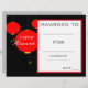 Um prêmio de certificado de prêmio acadêmico de classe escolar com uma imagem temática de lanternas vermelhas chinesas em perfeita perfeição para encorajar um jovem estudante de língua mandarim. Você pode escrever em seus próprios detalhes. Um recurso de excelente para qualquer tipo de professor de sala de aula. Tema preto e vermelho