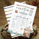 Adicione um toque pessoal e caprichoso ao seu chá de fraldas com este Cartão de Chá de fraldas de Pesca Rustic Reel Fun! Perfeito para um chá de fraldas náutico, florestal ou de temática nacional, este jogo permite aos hóspedes adivinhar detalhes divertidos sobre o bebê e escrever bons desejos para a futura mãe. Projetados com uma armação charmosa de artes de pesca, sotaques de aquarela e elementos rústicos macios, esses cartões são ideais para chás de fraldas de garotos neutros em relação ao gênero ou até festas de aniversário de pesca. Este papelaria inspirado em vassoura é bonito e funcional, misturando flores silvestres florais, vibrações florestais e temas de pesca em uma lembrança memorável para a família. Compare estes com convites, anúncios e outros artesanatos e suprimentos de festas para uma celebração coesa. Perfeito para um chá de fraldas do "Pescador no Caminho", esses cartões bonitos são uma tendência adicional à sua decoração do chá de fraldas de pesca.