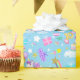 Este adorável design de unicórnio de 10 anos, com estrelas, nuvens e arco-íris, faz o papel de embrulho perfeito para uma celebração mágica.