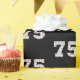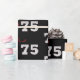 75ª festa de aniversário com negrito e branco feliz e texto número 75 em preto com buquê de balão de festa. A cor de fundo preta pode ser alterada.