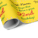 Este design de papel básico de empacotamento de aniversário personalizado apresenta uma mensagem como "Nome, esperamos que você tenha um excelente de 92 anos!", onde o nome e o número de aniversário podem ser personalizados. Também apresenta formas decorativas de estrelas. O fundo tem cor amarela. Um papel de embrulho como este poderia talvez ser usado para embrulhar presentes que estão sendo dados para celebrar o aniversário de alguém. [~Z0000243]