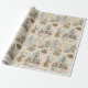 Alice, o Coelho Branco, Festa do Tea dos Chapéus Loucos e o Gato de Cheshire em ilustrações coloridas são colocados numa colagem de fundo de velhas páginas de livros da Alice no País das Maravilhas com texto da história, para fazer este excelente de papel de presente literário.