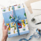Os animais de estimação também adoram o papel de moldagem de Natal! - Cavalo, cão, gato, peixe, tartaruga, cobra, pássaro, coelho e furão. Juntos em uma design de Natal repetida, só para o caso de você embrulhar seus presentes de animais de estimação para o Natal. Estes animais de estimação estão reunidos fora na neve trocando presentes. Azul-céu, fundo de neve com verde, neve coberta de árvores de Natal.