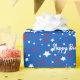 Estrelas vermelhas e brancas e pontos em fundo azul para o aniversário. A cor de fundo pode ser alterada.