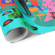 Esta família retro que apara o papel de envolvimento da árvore de Natal contem cada tradição do feriado mas o fruitcake. Uma família dos desenhos animados dos anos 60 está em casa em sua sala de visitas moderna do meio século. Há uma parede de tijolo de turquesa e de cerceta e um vermelho, lareira do cone com um fogo rujir. O pai está vestindo um terno preto e um laço vermelho. Está pendurando meias verdes do Natal na chaminé da modificação com cuidado. Ao lado do pai, o júnior é empoleirado precària em uma cadeira alaranjada. Whoa! Fácil lá, júnior! Está alcançando para fora para pôr um ornamento sobre um kitchy, cor-de-rosa, a árvore de Natal que é já decked para fora com ornamento da cerceta e uma estrela amarela. No lado oposto da árvore, a mamã está guardarando um presente festiva envolvido. Hey, nenhuma agitação permitida! A mamã está vestindo um vestido vermelho brilhante do wiggle com guarnição branca. Igualmente está vestindo um chapéu do papai noel. Abaixo da árvore, há um gato preto lustroso que veste um arco vermelho. No assoalho, há um jogador gravado verde e preto cercado por álbuns coloridos do vinil. Você apenas sabe que a família está cantando junto com suas canções de natal favoritas do Natal quando forem decking os salões.