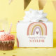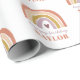O Rainbow Boho Peach Purple Birthday Wrapping Paper apresenta uma adorável dupla de arco-íris em tons de rosa, pincel, mostarda, aqua e marinho, juntamente com a caligrafia moderna.