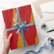 Presente Árvore de Natal Dourada no Papel Vermelho