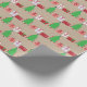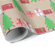 Um papel de embrulho desenhado com árvores de Natal e presentes sobre fundo bege. Feliz Natal!