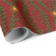 Estrelas verdes da árvore e do ouro de Natal em um papel de envolvimento vermelho do fundo.