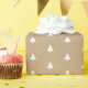 Pequenas árvores brancas em fundo de papel kraft, para a época festiva e sabor minimalista.