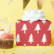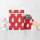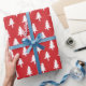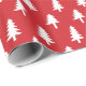 Enrole seus presentes em estilo com papel personalizado de embrulhamento das árvores de Natal. O papel de embrulho de na moda apresenta um padrão de árvore de Natal branco e rústico contra um fundo vermelho.