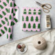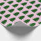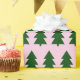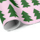 Árvores de Natal verdes colam papel de enrolamento rosa.