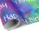 Um belo papel brilhante a embrulhar o papel a rebentar com um arco-íris de cores num design que faz fronteira entre arte fractal e corante de gravata. "Parabéns" pode ser alterado para se adequar a qualquer evento ou totalmente excluído (apenas deixe o vazio do campo de texto). ** NOTA: A visualização "Plano" mostra uma seção de papel de 3 pés de comprimento. O comprimento mínimo do rolo é de 6 pés, de modo que a vista "Seam" mostra onde a primeira seção de 3 pés encontra a segunda seção de 3 pés. Um rolo de 30 pés, por exemplo, teria dez seções de 3 pés se repetindo.