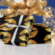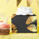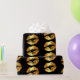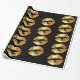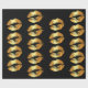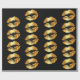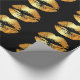 Papel de envolvimento luxuoso com beijos dourados dos lábios do falso em um fundo preto. Distinto papel de envolvimento.