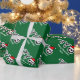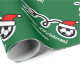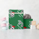 Papel de envolvimento do Feliz Natal com a bola de futebol do chapéu do papai noel. Design bonito do feriado para jogadores e fãs de futebol. Papel de embrulho engraçado do Xmas para homens, mulheres e miúdos (meninos e meninas). Personalizable com nome e cumprimento feitos sob encomenda. Cores verdes e vermelhas. A cor do fundo é customizável.