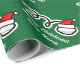Papel de envolvimento do Feliz Natal com a bola de rugby do chapéu do papai noel. Design bonito do feriado para jogadores e aficionados desportivos. Papel de embrulho engraçado do Xmas para homens, mulheres e miúdos (meninos e meninas). Personalizable com nome e cumprimento feitos sob encomenda. Cores verdes e vermelhas. A cor do fundo é customizável.
