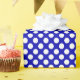 Um papel de embrulho construído com um padrão de bolinhas branco sobre um fundo azul real. Personalize o fundo azul real de uma maneira fácil.