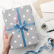 Um papel de envolvimento construído com um teste padrão de bolinhas branco com uma grande distância entre os pontos em um fundo cinzento. Personalize o fundo cinzento em uma forma facil.