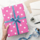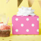 Um papel de envolvimento construído com um teste padrão de bolinhas branco com uma grande distância entre os pontos em um fundo cor-de-rosa. Personalize o fundo cor-de-rosa em uma forma facil.