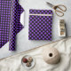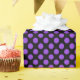 Um papel de embrulho construído com um padrão de bolinhas roxo sobre um fundo preto. Personalize o plano de fundo preto de uma maneira fácil.
