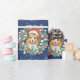 Este presente contém uma adorável estante de aquarela vestindo um chapéu de Papai Noel cercado por uma coroa de Natal sobre um fundo azul marinho. Perfeito para o amante do cão na sua vida.