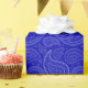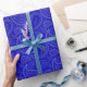 Um papel de envolvimento construído com um teste padrão de paisley, branco em azuis marinhos. Personalize o fundo azul em uma forma facil.