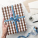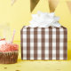 Um papel de envolvimento projetou com um teste padrão marrom e branco do guingão no tamanho médio.