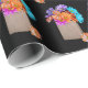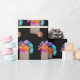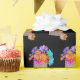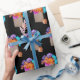 Buquê de margarida colorido em um saco de papel marrom em preto.