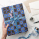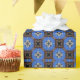 Este padrão brilhante apresenta um fundo azul brilhante com quadrados azuis castanhos e marinhos. Dentro cada quadrado é design em forma de estrela.