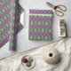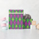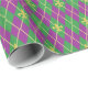 Um padrão harlequin de verde e roxo se transforma em um argilo lúdico com uma camada de contornos de diamante de ouro e flur de lis, criando um padrão divertido e colorido perfeito para qualquer nova orleans influenciou a celebração do Mardi Gras.