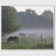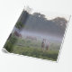 Papel de envolvimento do estilo da casa da quinta. Cavalos na névoa em um prado no campo.