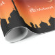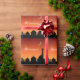 Ilustração do cumprimento de Eid com uma cena do céu da noite: silhueta de uma mesquita em um céu vermelho da noite.
