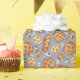 Este padrão apresenta pães de chalá cozidos e sementes de sésamo em fundo azul. Ideal para projetos de Páscoa e assar.