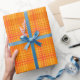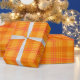 Um rolo de Giftwrap, com um padrão brilhante de xadrez em tons de Marigold Orange e Red. Parte da coleção Posh & Painterly 'Marigold Medley', este padrão irá ajustado qualquer um dos rolos de papel de embrulho.