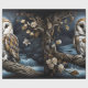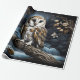 Folha plana de papel de enrolamento em forma de corte de 3 corujas na ramificação em luz de lua