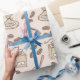 Este papel de embrulho de café é projetado em marrom pastel e cores beges no estilo de rabisco.
