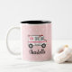 Esta caneca cor-de-rosa e branca bonito das bolinhas com uma ambulância nela pode ser personalizada com o nome do EMT nela. Isto faz um presente bonito do pelotão e do paramédico do salvamento para ela. © Chrissy H. Estúdio dos trabalhos de arte, LLC. Todos os direitos reservados.