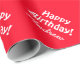 Papel personalizado personalizado de empacotamento de aniversário. Adicione seu próprio nome e mensagem como Feliz Aniversário. Uma ideia bonita e personalizável para comemorações de festas. Adequado para homens, mulheres e crianças (rapazes e raparigas). Cores de fundo e anotação personalizáveis. Um exemplo vermelho e branco de cereja. Modelo de tipografia de tendências. Embalagem de presente divertida com o nome de criança ou adulto. Personalizar para pai, pai, mãe, mãe, filha, filho, neto, amigos, família, etc.