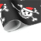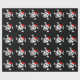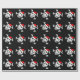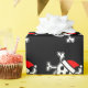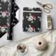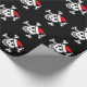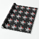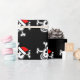 Design alegre do crânio do papai noel do papel de envolvimento | do Natal de Roger. O papel de embrulho engraçado do Xmas com esqueleto e os ossos pirateiam a cabeça que veste um chapéu vermelho de Papai Noel. Cor preta customizável do fundo.