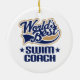 O ornamento cerâmico da lembrança do olhar frente e verso dos esportes tem citações do treinador da natação dos mundos as melhores. Grande presente para um treinador da natação, tem o cabo do cair do ouro. O uso como um gancho do ornamento ou do carro da árvore de Natal, ou adiciona seu próprio cabo mais longo para fazer uma colar do pendente. Stuffer da meia do Natal do divertimento, presente das mães ou do dia dos pais, presente de aniversário demasiado.