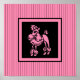 Um poodle rosa é o ponto focal desta impressão de arte. De uma ilustração original.