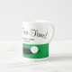Um presente de caneca de chá engraçada para jogadores de golfe. Uma caneca chinesa de osso bonito com bola e furo para colocar design verde. Adicione sua própria citação ou texto personalizado. Presente divertido para golfista, pai, mãe, instrutor e fã.