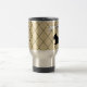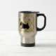 Personalize esta caneca de café escocesa mudando o nome. Os padrões de costura em bege clássico e argila preta dão a este estilo retrorreflector de caneca de viagem Terrier escocês. Use esta caneca Scottie em uma cozinha, cozinha retrô, como presente, etc...