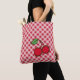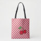Cerejas vermelhas brilhantes e gingham decoram este saco de na moda. O design é da arte original.