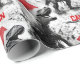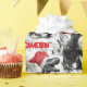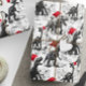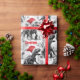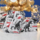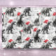 A design de Natal personalizada apresenta dinossauros em monocromo vestindo chapéus vermelhos brilhantes de Santa. Permite adicionar um nome ao design em um padrão repetitivo.