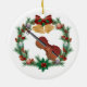 Este design bonito da grinalda do Natal tem um violino no centro em um ornamento cerâmico frente e verso da música para o violinista. Um grande stuffer da meia para o estudante do violino ou o professor de música em grupos da orquestra ou do conjunto.